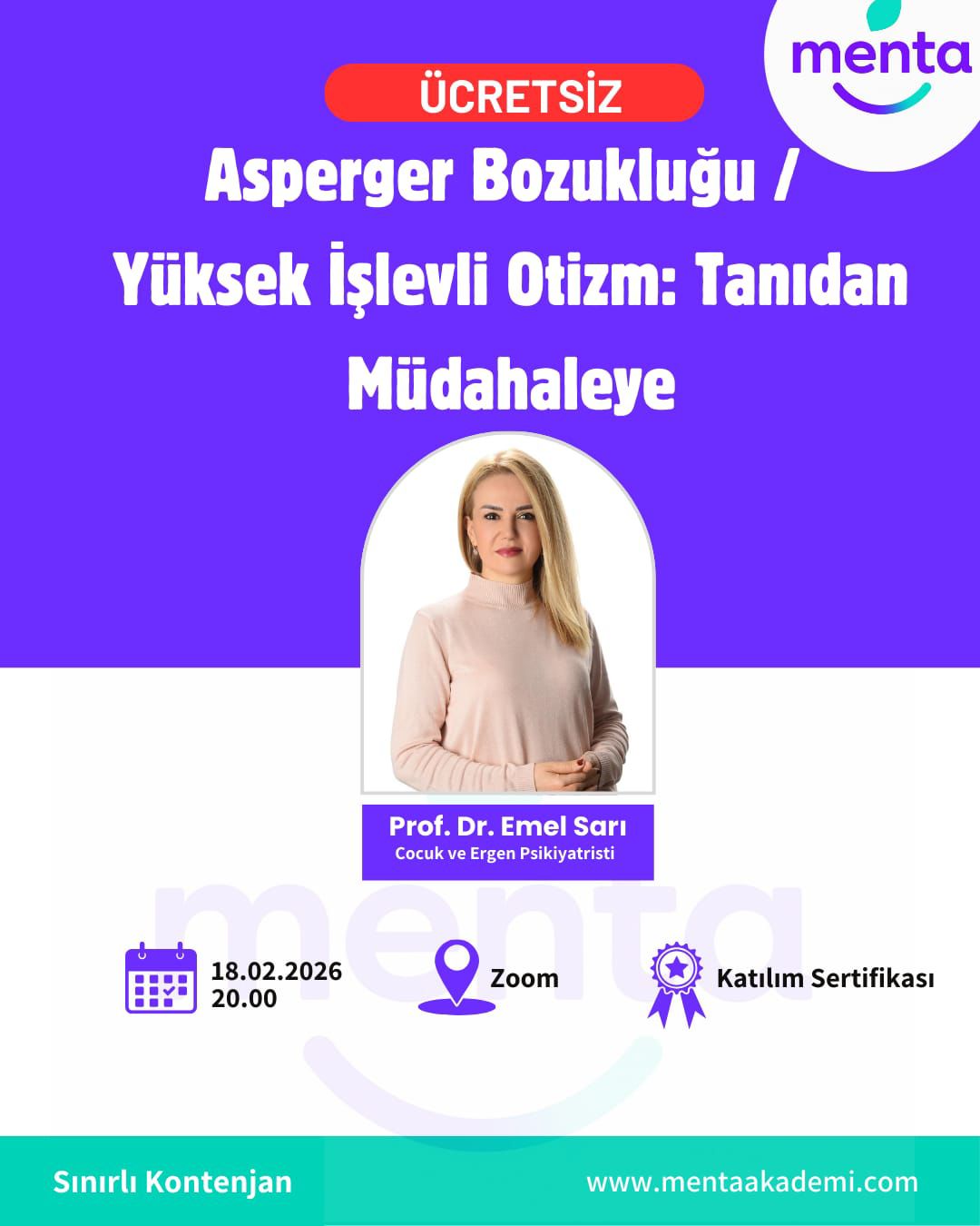Bu eğitim, Asperger Bozukluğu ve Yüksek İşlevli Otizm Spektrumunda yer alan çocukların tanılanma süreci, ayırt edici özellikleri ve müdahale yaklaşımlarına dair güncel ve klinik temelli bir bakış açısı sunmak amacıyla hazırlanmıştır.