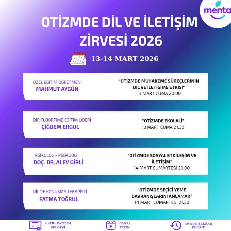 Otizmli çocuklarla çalışan uzmanlar için özel olarak hazırlanan bu zirvede, dil ve iletişim alanındaki en güncel yaklaşımlar, vaka örnekleri ve uygulamaya dönük stratejiler ele alınacaktır.